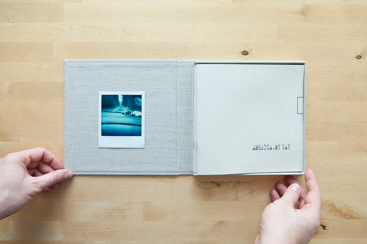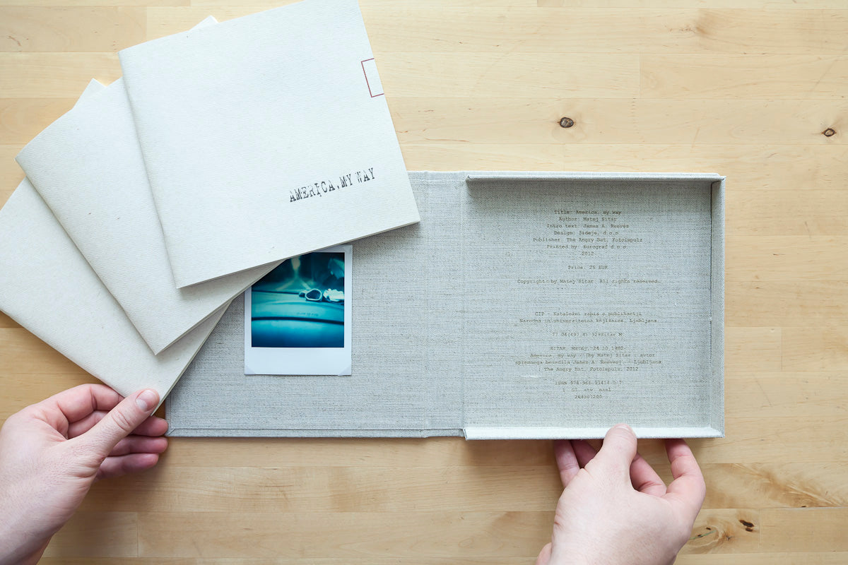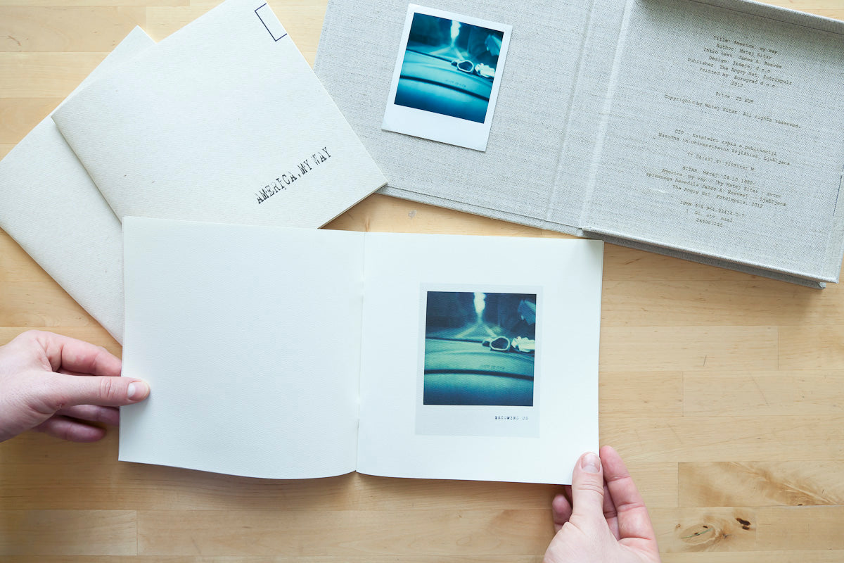 The book concentrates on selected moments of a journey across the American landscape. It can be understood as 3 different journeys across the country as each book contains repeating pictures in every book (9) as well as changing pictures (30). The aim of this approach is to show the vast amount of possibilities that a journey can offer. If you open all the booklets on the same page, this alternative pictures function as triptychs, forming a unity. The series presents an intimate view of the experiences of a visitor in a foreign country. It has been presented in various exhibitions in Europe and the USA and it won 3 awards.