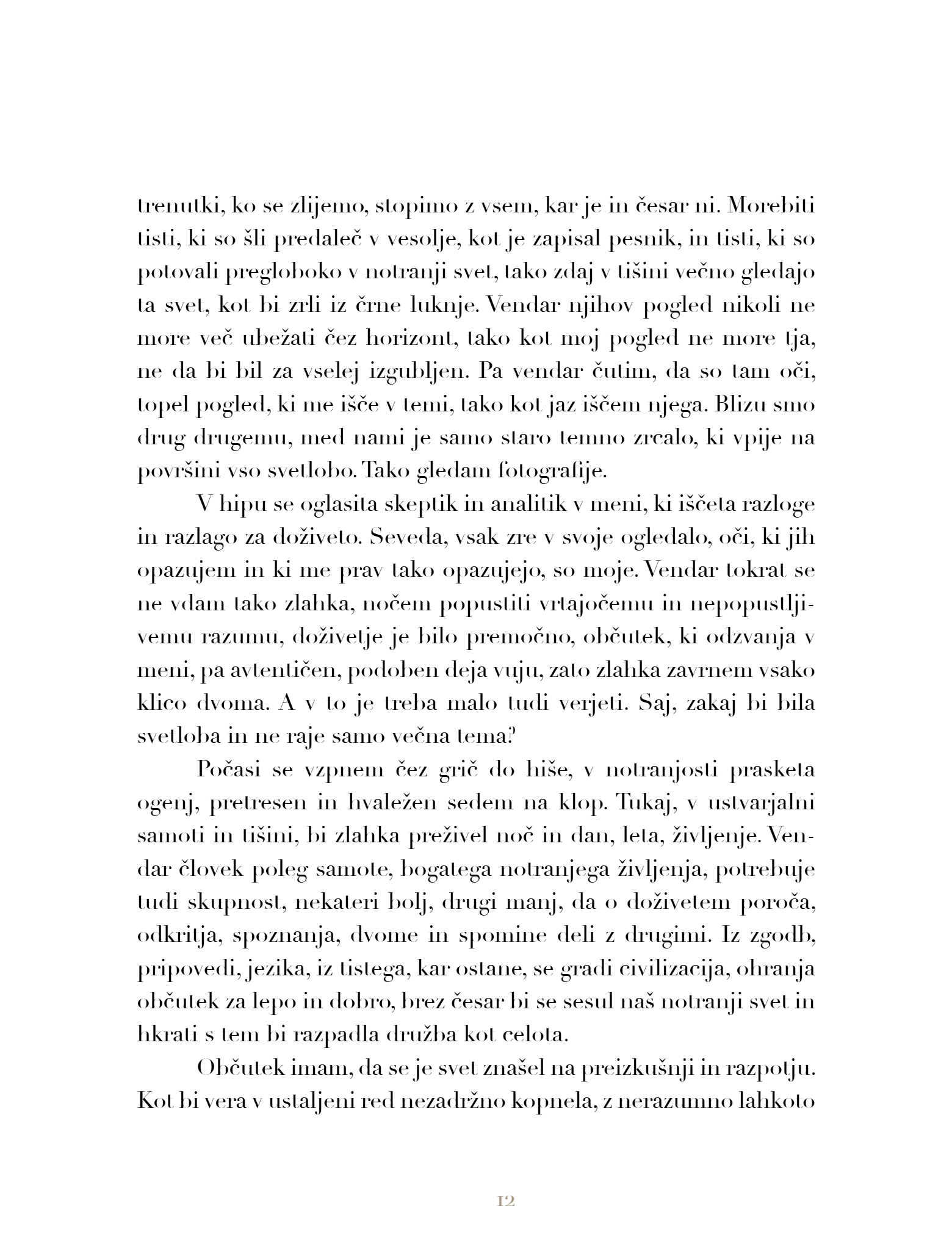 The new book by the renowned writer Dušan Šarotar, Počivališča na poti (Resting Places Along the Way), presents five travel essays that seamlessly transition between deeply meditative reflections in masterful poetic language and tangible references from art, culture, and the pool of human knowledge and creativity, organically grounding the texts in the real experience of existence. The duality in unity is a manifestation of the author's thoughts on two spaces that never completely overlap, even though they are very similar.