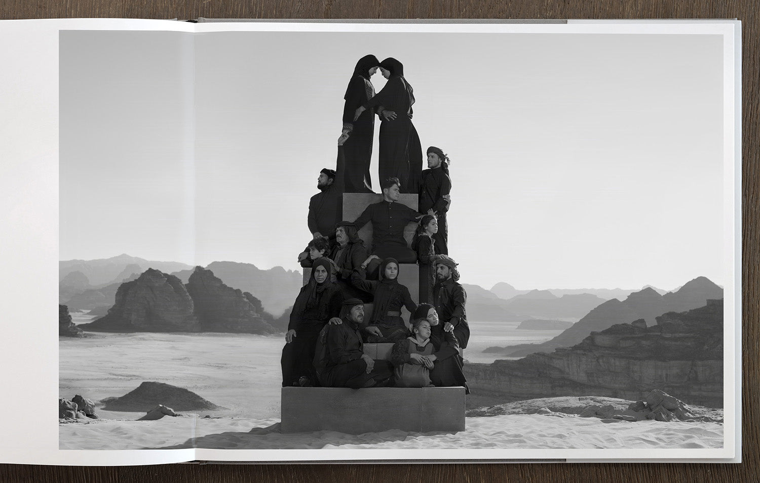 This is the fourth chapter of The Day May Break, photographer Nick Brandt's global series portraying people and animals impacted by climate change and environmental degradation. The series was photographed in Jordan, one of the most water-scarce countries in the world. It features rural Syrian refugee families currently living there, whose lives have been seriously impacted by droughts intensified by climate change. Living lives of continuous displacement, they are forced to move their homes up to several times a year, moving to where there is available agricultural work, to wherever there has been sufficient rainfall to enable crops to grow. The photographs show the families' connection and strength in the face of adversity, that when all else is lost you still have each other. The boxes on which the families gather aim skyward, pedestals for those in our society that are typically unseen and unheard.